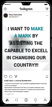 Sayda Student Visionaries of the Year is an awesome leadership program where high-school students like me take on a 7-week journey to raise funds for Southern African Youth Development Agency's mission! π Youth are the #1 most vulnerable members of society when it comes to substances and other detrimental effects. Itβs time to #SaveOurYouth and by donating to my campaign, we can do just that π (Insert personal fundraising page) #SaydaVisionaries #SaveOurYouth #SaydaVisionaries #SaydaYouthInBusiness